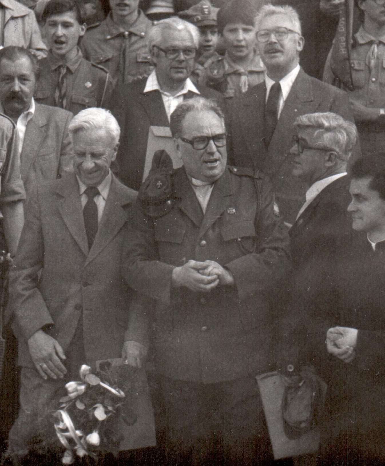 Na fotografii (autor Jacek Szynkarek) na schodach kościoła franciszkanów w Poznaniu od lewej: hm. Stanisław Broniewski ORSZA, o.hm. Stanisław Paliński OMI, hm. Jan Sielicki.